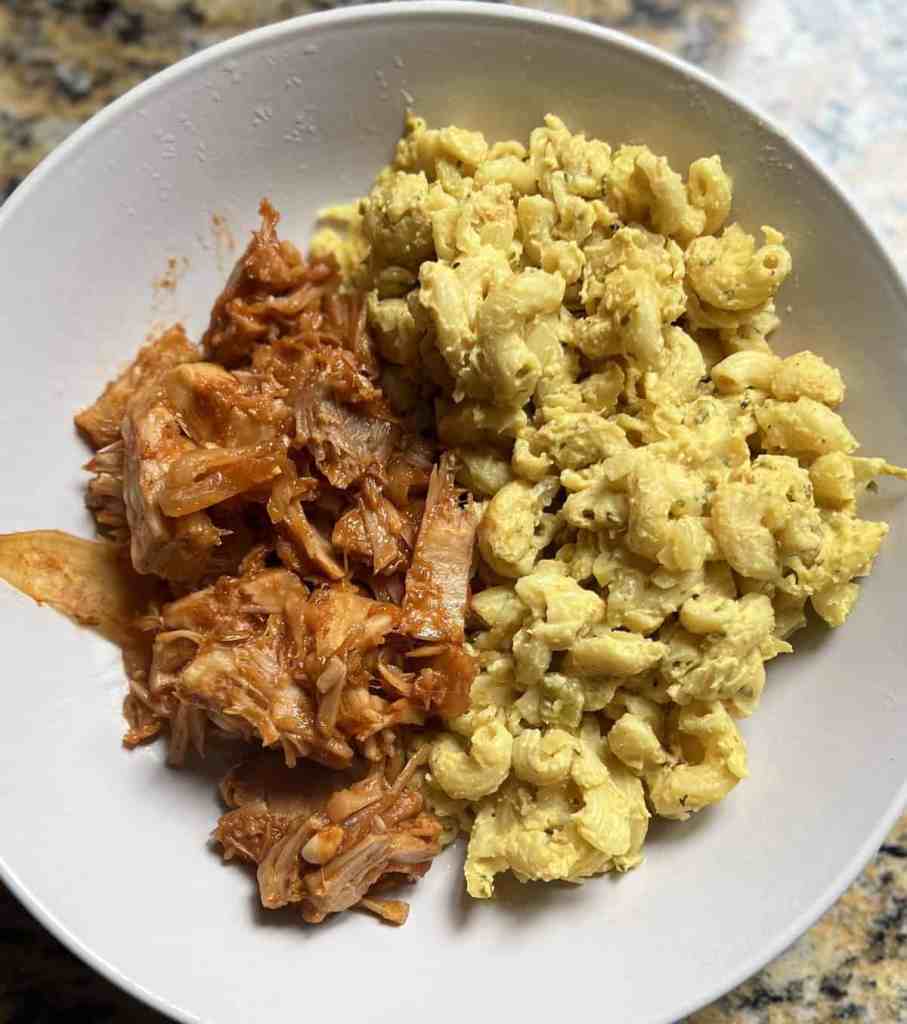 My favorite three ways to eat this jack fruit are as tacos, over a baked potato or my hatch chili vegan Mac and cheese. BBQ Jackfruit tacos quite accommodating for many diets, so they are easy to feed a crowd.